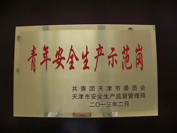 2013年 被評為天津市青年安全生產示范崗