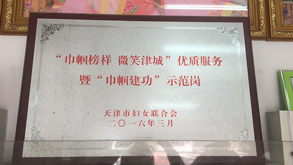 2016年 被授予巾幗榜樣微笑津城優質服務暨巾幗建功示范崗
