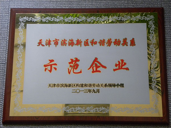 2013年 被天津市濱海新區構建和諧勞動關系領導小組評為和諧勞動關系示范企業