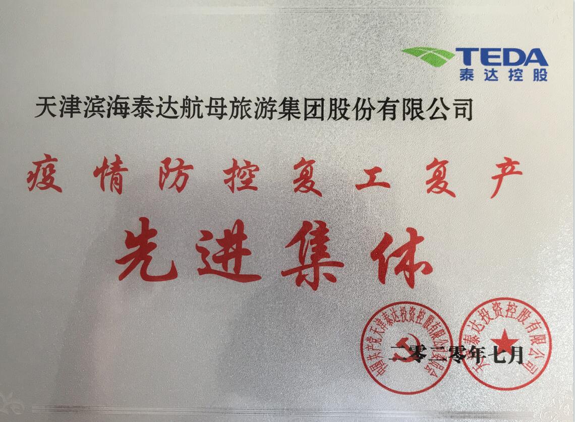 2020年榮獲泰達控股疫情防控復工復產先進集體表彰