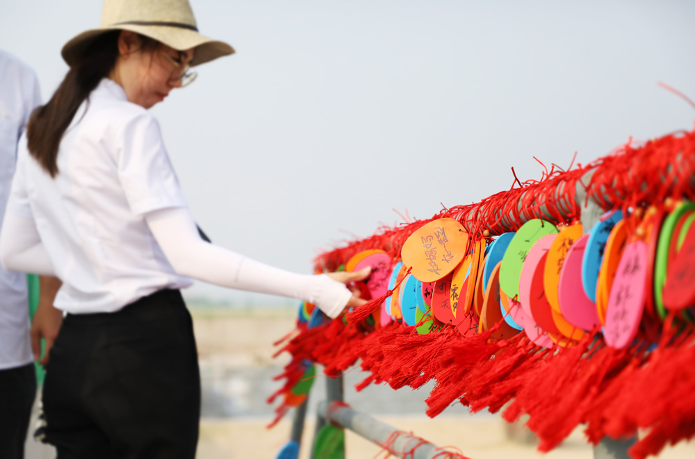 正對著全球最高的媽祖像的渤海第一灣,前往趕海拾貝的游客均可獲得一枚木質許愿牌,悄悄寫下愿望,靜靜等待實現的那一天。