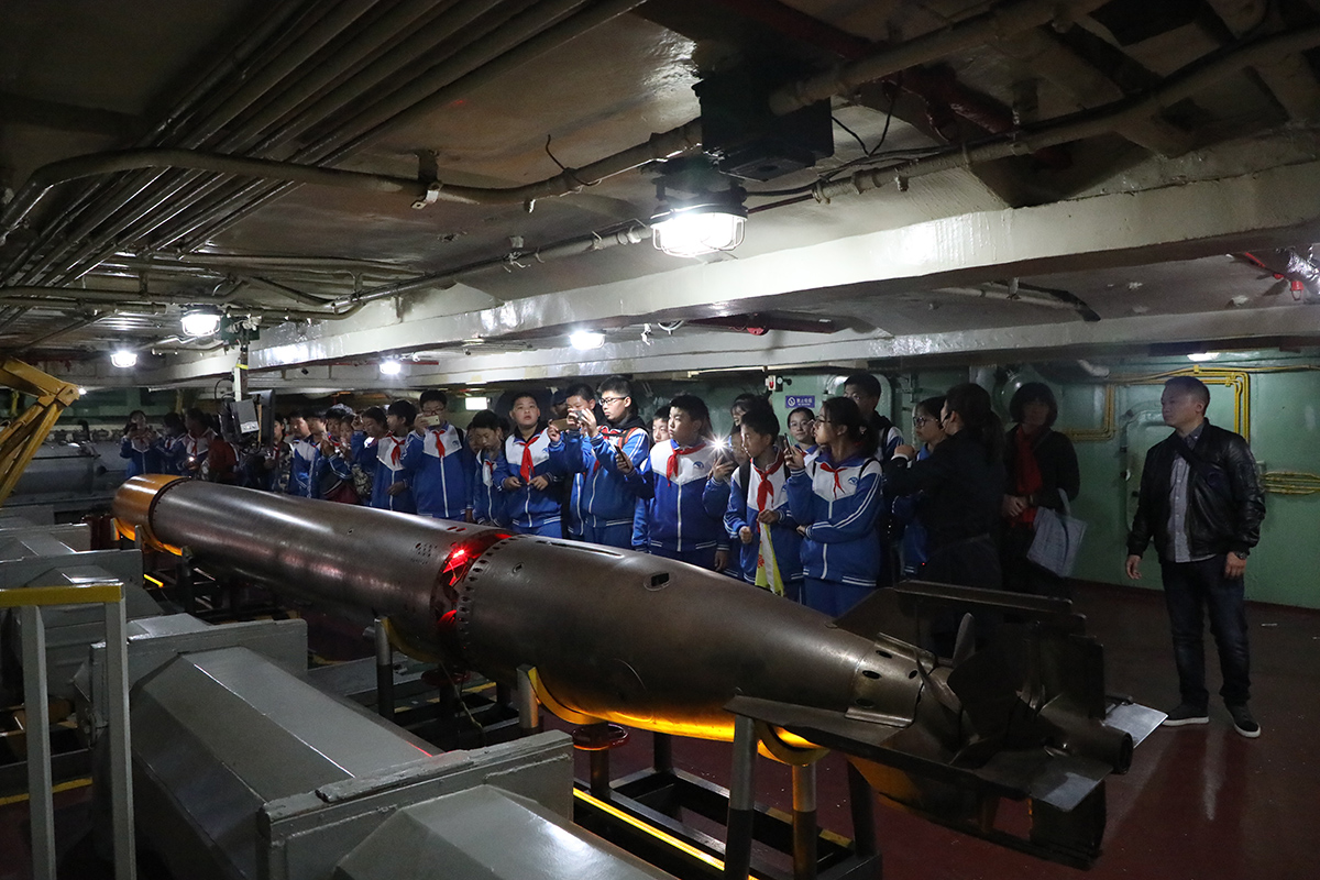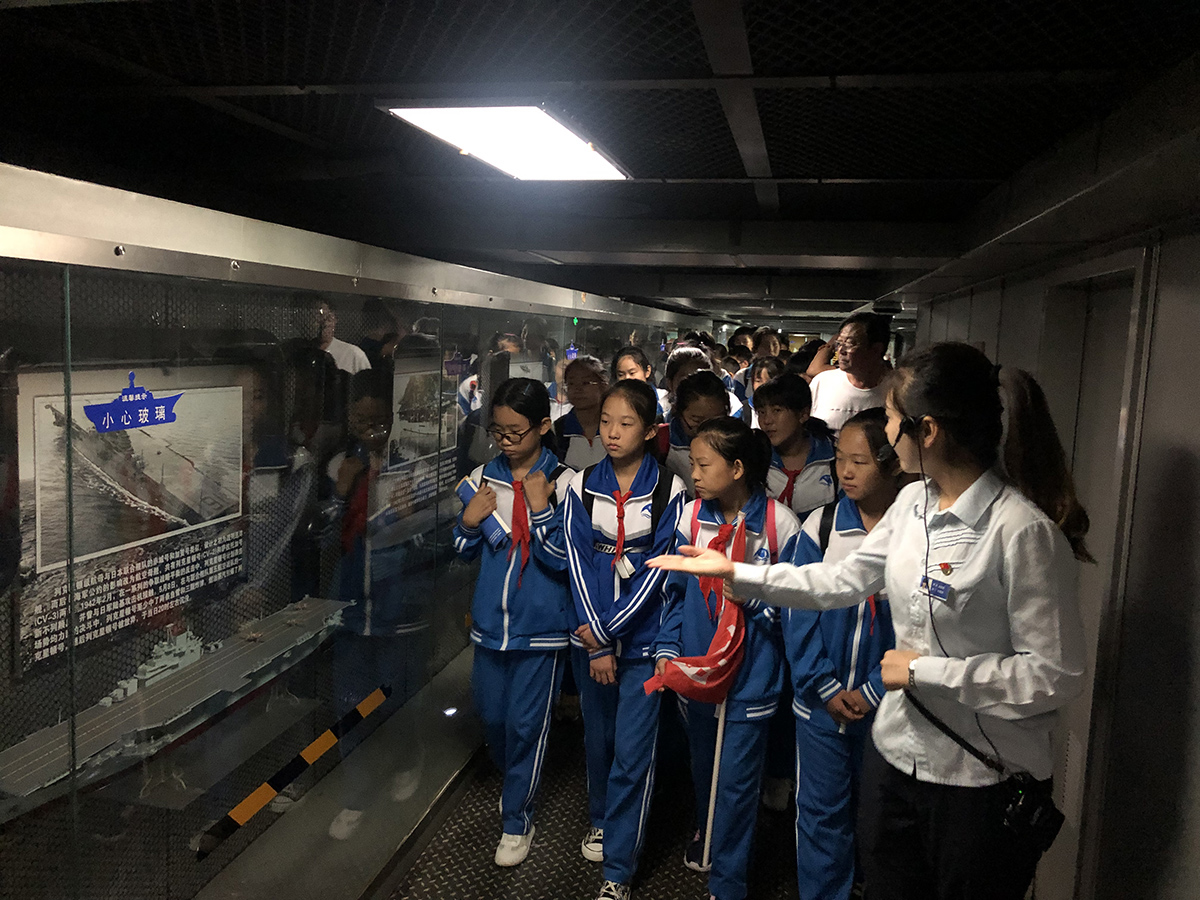 以泰達航母國防教育基地為核心,將國防教育、愛國教育,武器裝備和軍事氛圍等融入研學中,最終形成特點鮮明的體驗式研學。